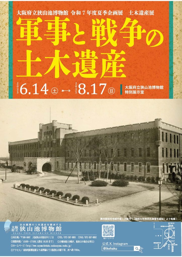 大阪府立狭山池博物館では、以下の通り令和7年度夏季企画展「土木遺産展 軍事と戦争の土木遺産」を開催いたします。みなさまぜひご来館ください。