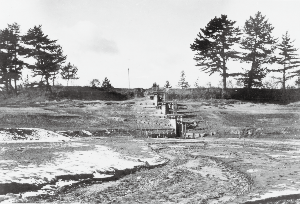 西樋は、慶長13年に片桐且元(かたぎりかつもと)が狭山池の大規模な改修を行った際に新設された樋です。中樋と同様に、4段からなる尺八樋が造られました。また、西樋の尺八樋も上側3段が大正~昭和の改修で撤去されましたが、土砂に埋もれていた最下段の4段目だけが残っていました。西樋は、江戸時代を通じて狭山池では最大規模の樋で、狭山池の水を抜ききることができました。