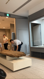 当展示ではわれわれの生活に欠かせない水に注目し、「水がつなぐ社会」について考えます。狭山池博物館からは重源狭山池改修碑(レプリカ)を展示しています。