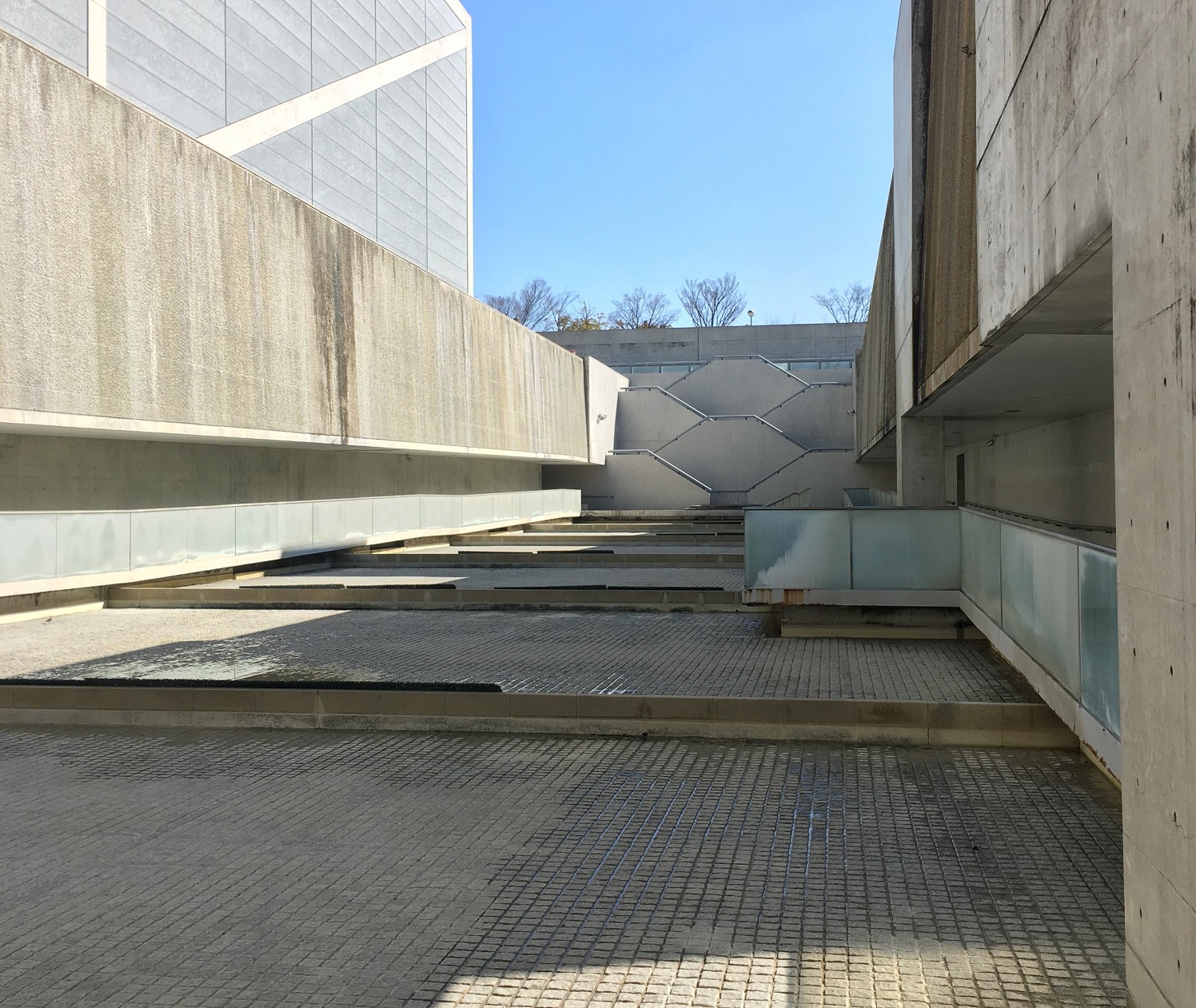 当館ホームページでお知らせのとおり、当館敷地の入口と水庭を結ぶエレベーターに不具合が発生した為、ただいまエレベーターを停止いたしております。