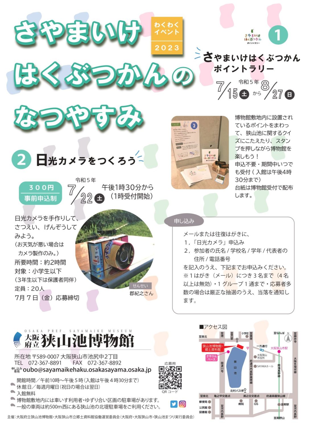 今夏は「さやまいけはくぶつかんのなつやすみ2023」と題し2つのイベントを行います。