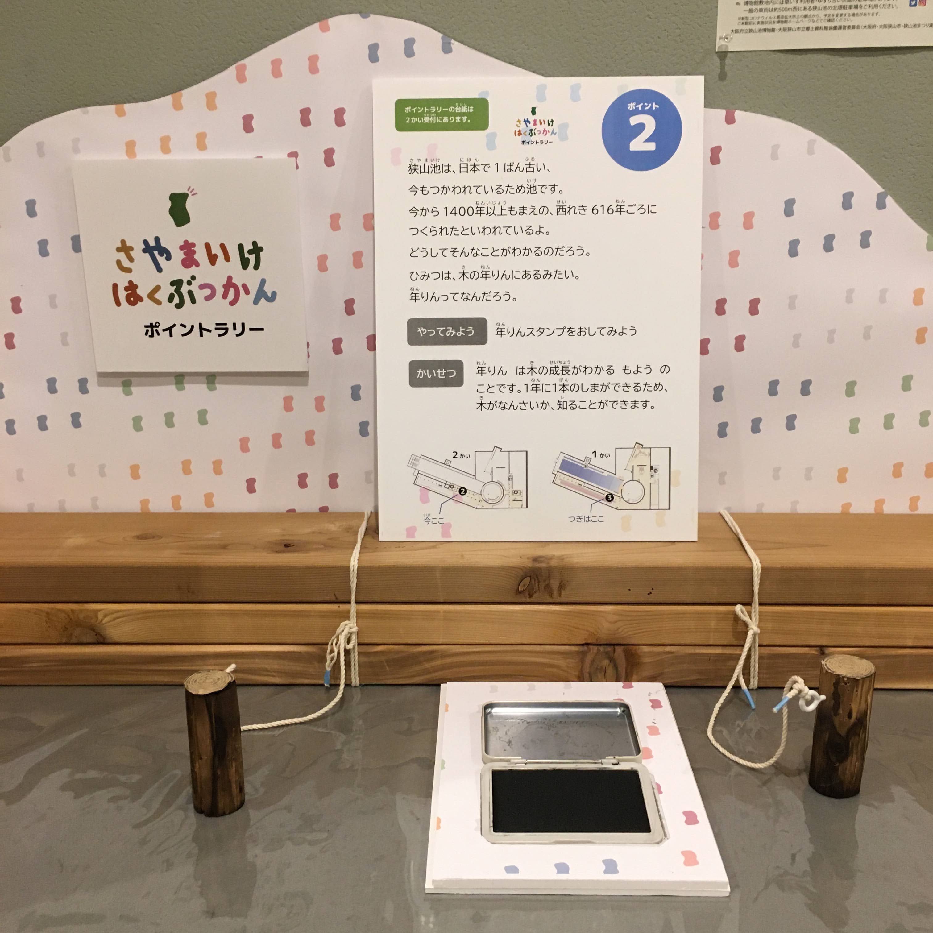 博物館敷地内に設置されているポイントをまわって、狭山池に関するクイズにこたえたり、スタンプを押しながら博物館を楽しもう!