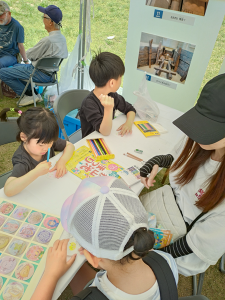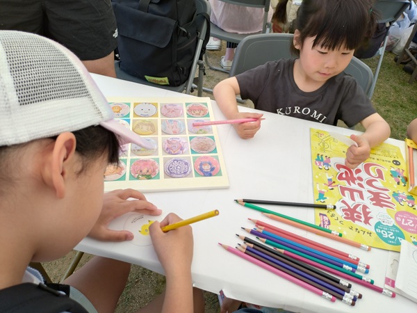 じぶんで描いた絵を博物館に持っていくと缶バッジになりますよ。