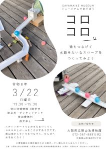 狭山池の桜 2026.3.21 狭山池博物館 今日の狭山池、最高に気持ちいい!北堤中段のコシノヒガンは順調に開花しています。そうそう!ゆっくりね! 北堤も樹影が赤くなってきました。 一番目のさくら!こんなに咲いてる! 狭山池博物館 公開講座 第7回。 最終回の今日は当館館長「難波津の成立と古代の船」。 たくさんの方が来てくださいました!ありがとうございます! 明日は、 コロコロ お天気もよさそうだし、桜ももっと咲きそうだし! お弁当食べたら、あそびませんか? 狭山池博物館屋上ガーデン、ウッドデッキで! どなたでも参加できます。 もろこ