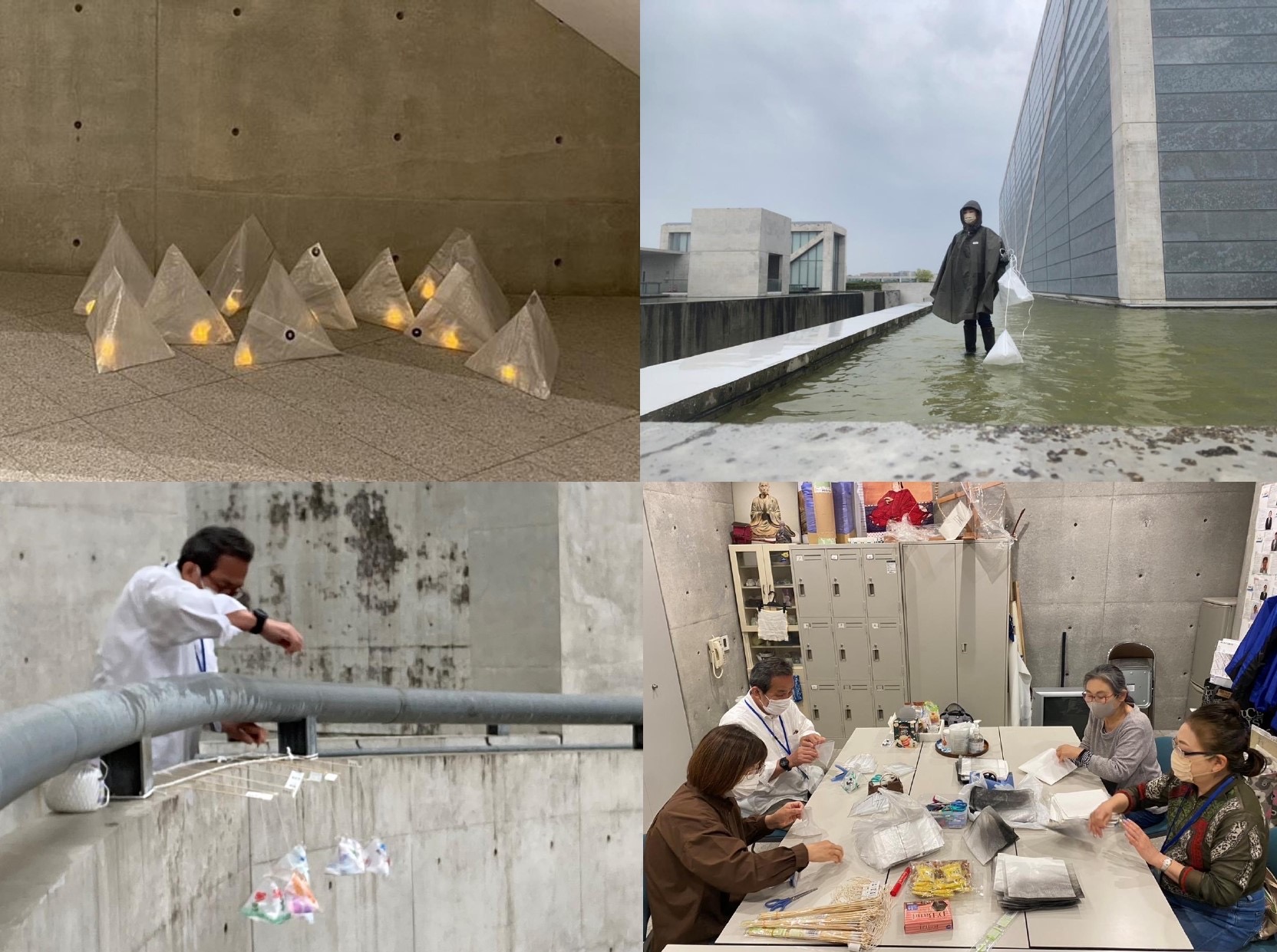 ワークショップで来場者が作った作品150点をふくめ、当日は430点ほどの灯りが博物館水庭や円形コートにともる予定です。