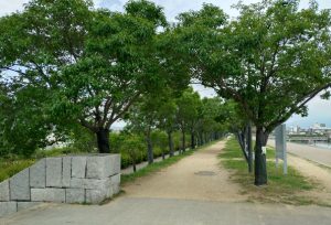 昨夜の風で吹き飛んだのか?狭山池北堤の桜はすっかり葉が落ちてしまいました。