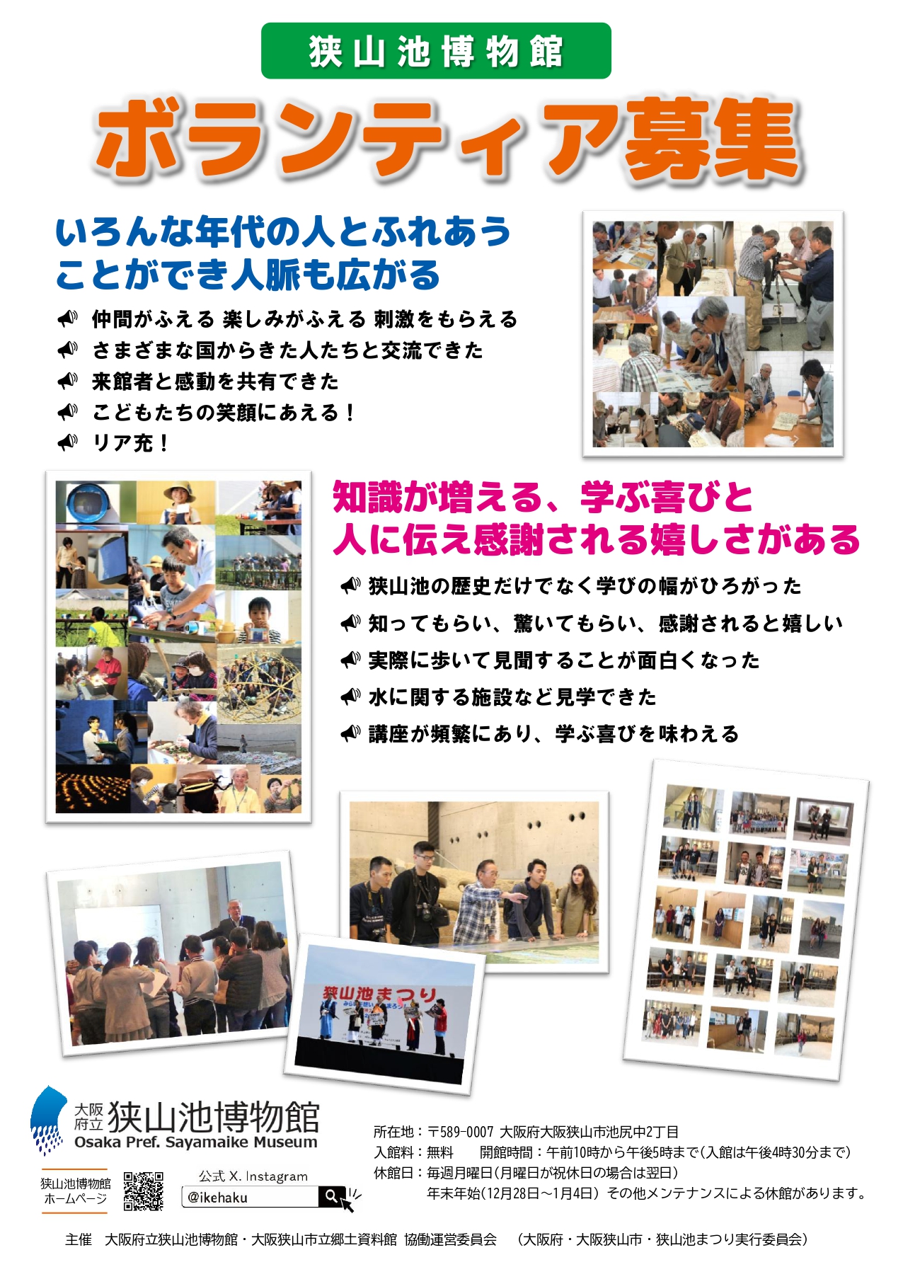 狭山池や博物館周り、館内ホールにてイベントもりもりやってます!!