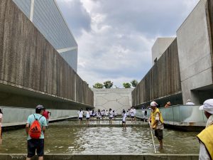 当展示ではわれわれの生活に欠かせない水に注目し、「水がつなぐ社会」について考えます。狭山池博物館からは重源狭山池改修碑(レプリカ)を展示しています。